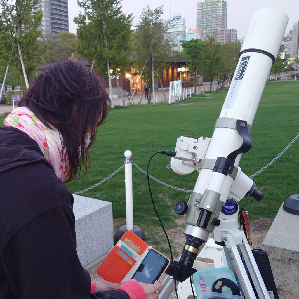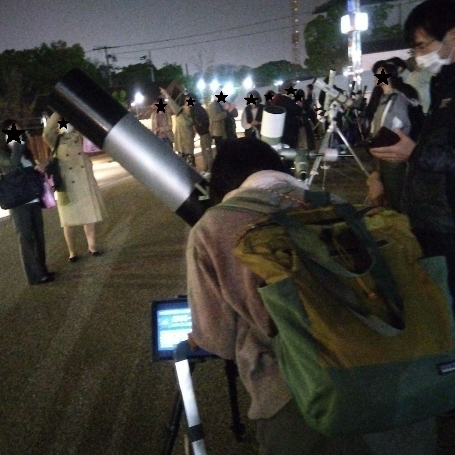 参加していただいた方々には、天体望遠鏡で月と木星(低空のため模様は見えませんでしたが)、M35・M37・NGC4565を電視観望で見て楽しんでいただきました。