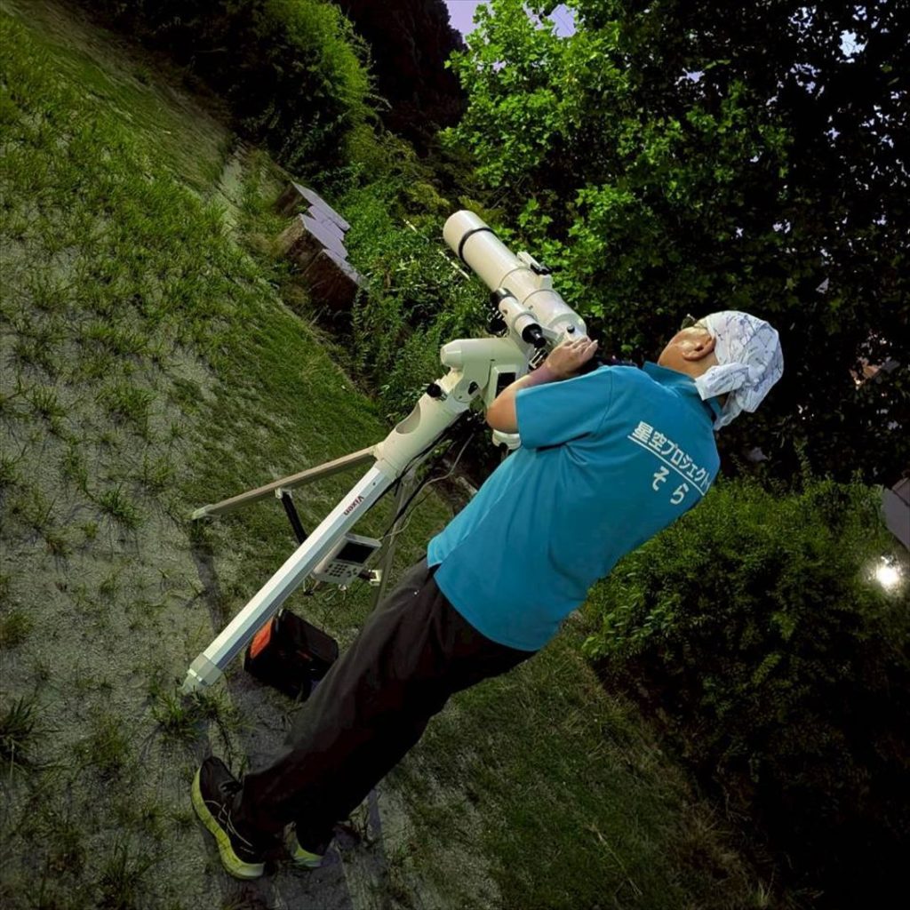 キャンプ&星空観望会(2025/08/16) 2025-08-17 最終更新日時 : 2025-08-17 p-sora 某子供会主催のキャンプで星空観望会を開催しました。約50名の方に参加いただき、アンタレス、アルタイル、ベガ、アルビレオ、M57を見ていただきました。また、擬似観望で月、木星、土星を見て楽しんでいただきました。