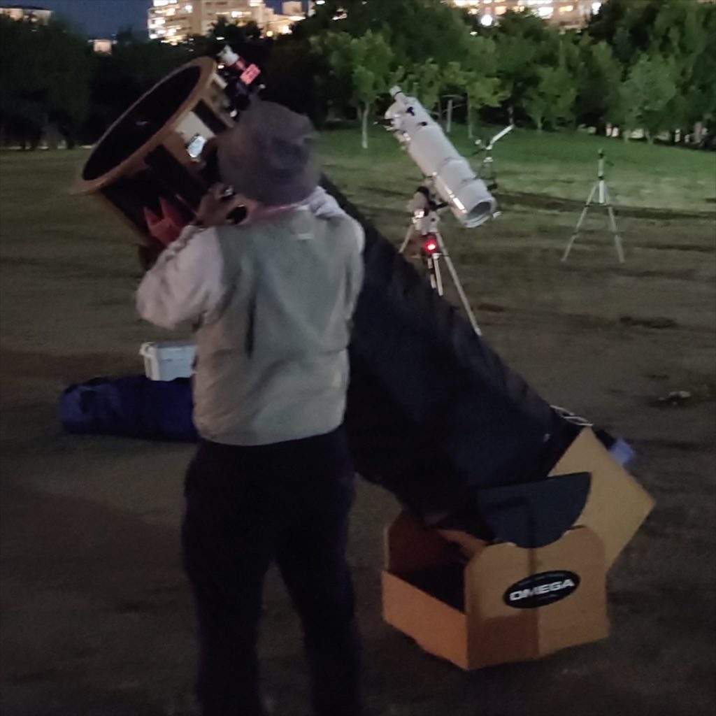 新西宮ヨットハーバー横の広場において、星空観察会を行いました。快晴の天気だったはずが、夕方から曇りだし、雲のすき間から見る観察会となりました。そんな中でも天体望遠鏡や電子望遠鏡でアークトゥルス・スピカなどの明るい恒星、アルギエバやミザールなどの二重星、M13・M3などの球状星団、M51・M104などの銀河、そして紫金山・アトラス彗星やM57などを観察しました。途中、ISS(国際宇宙ステーション)の通過もあり、楽しく有意義な観測会となりました。